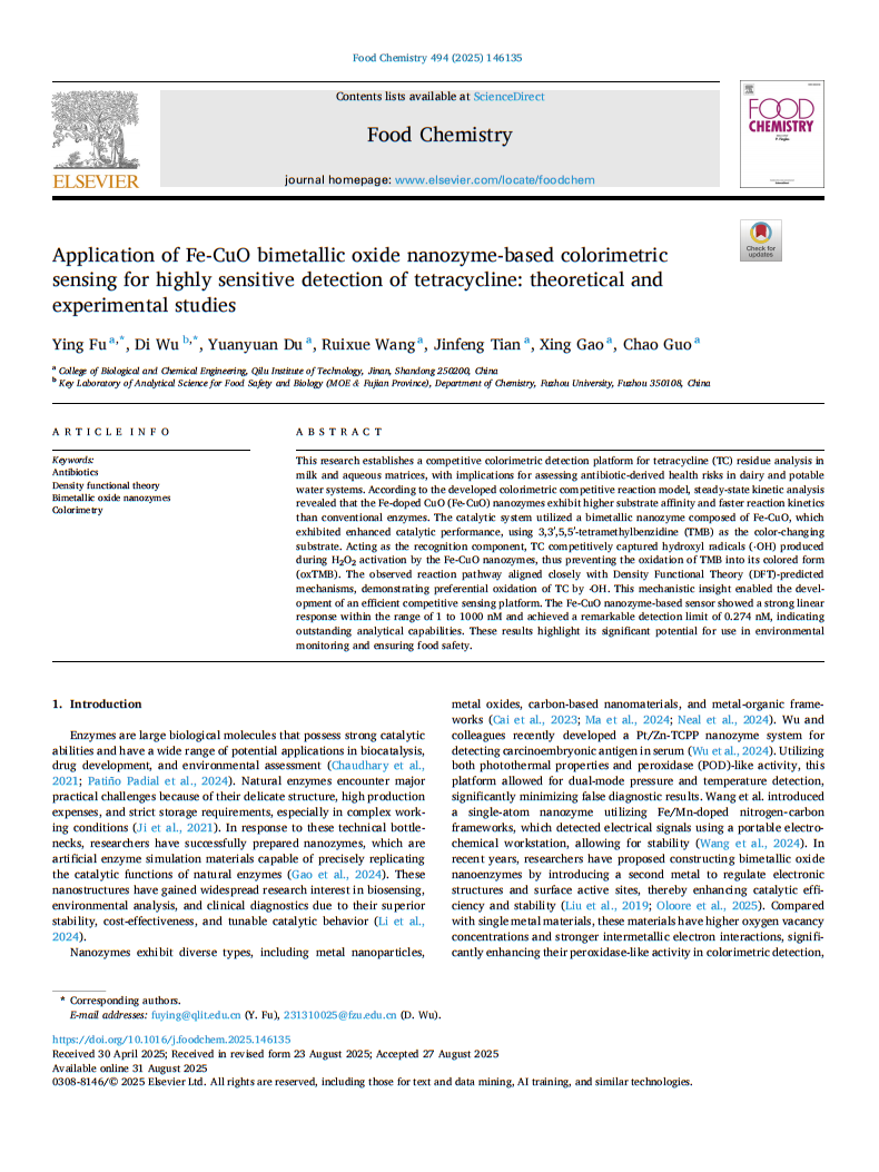 生物与化学工程学院付颖在《Food Chemistry》发表论文