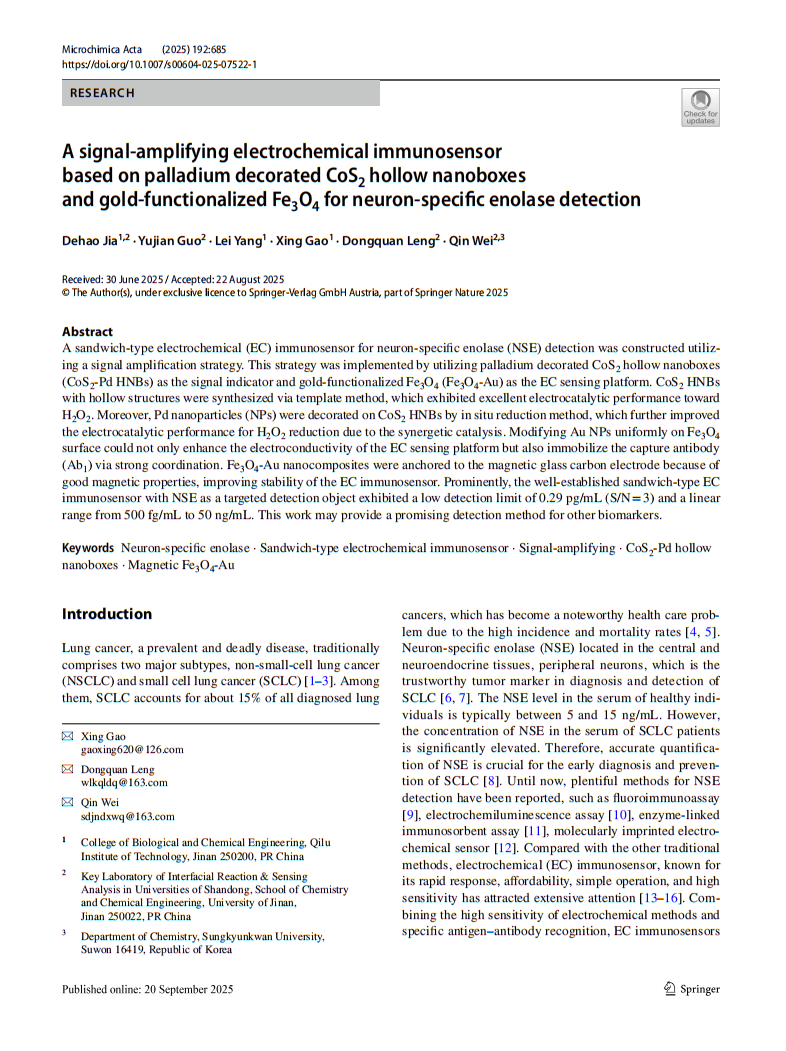 生物与化学工程学院高星在《Microchimica Acta》发表论文