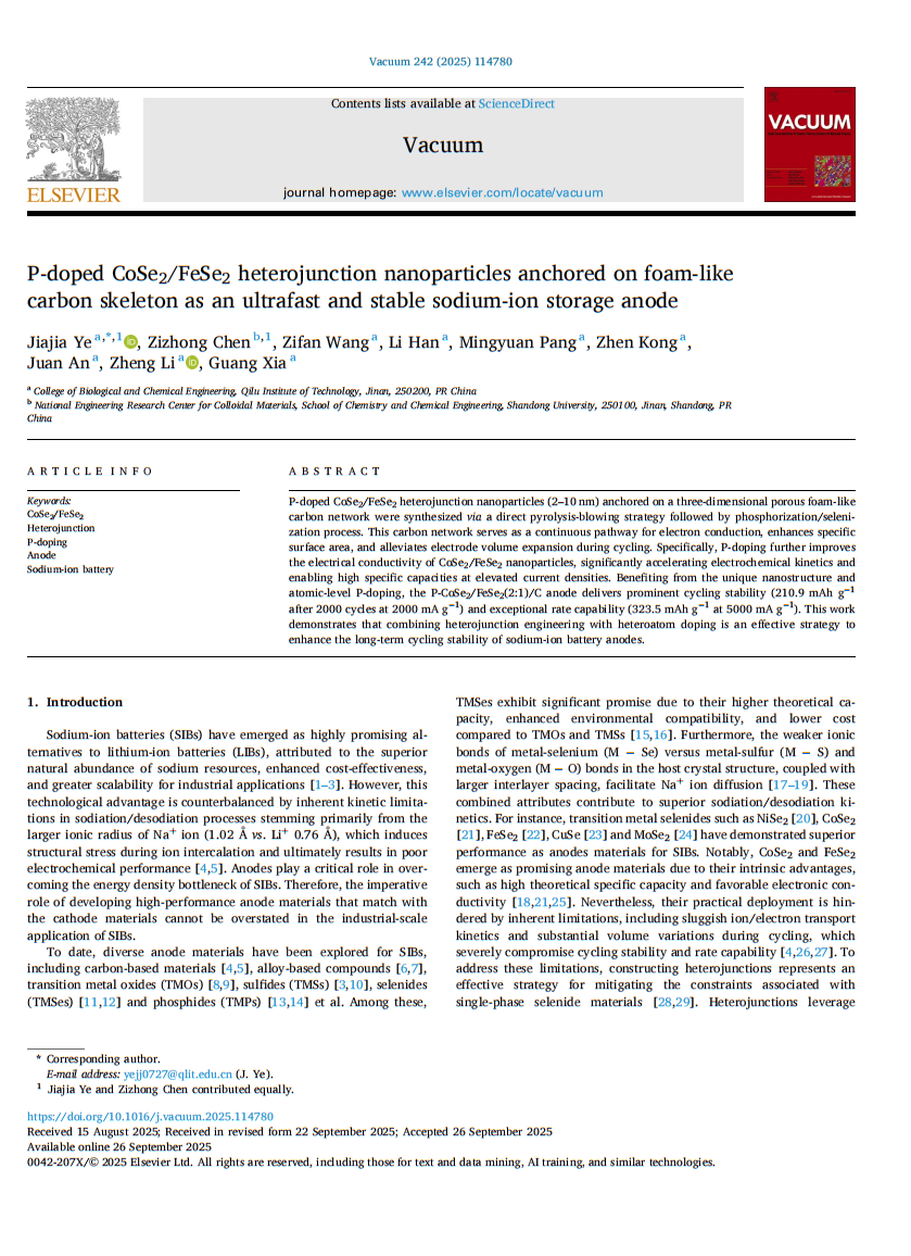 生物与化学工程学院叶佳佳在《Vacuum》发表论文