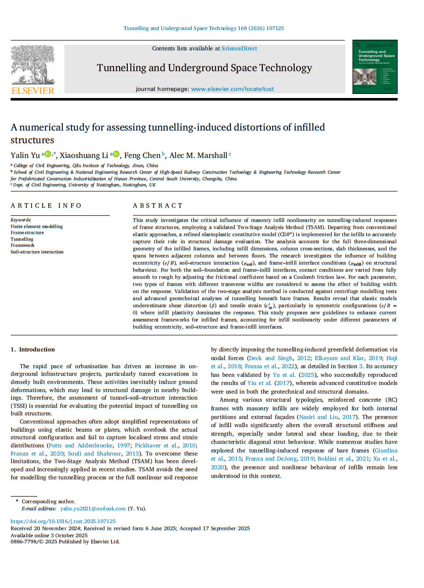 土木工程学院于雅琳在《Tunnelling and Underground Space Technology》发表论文