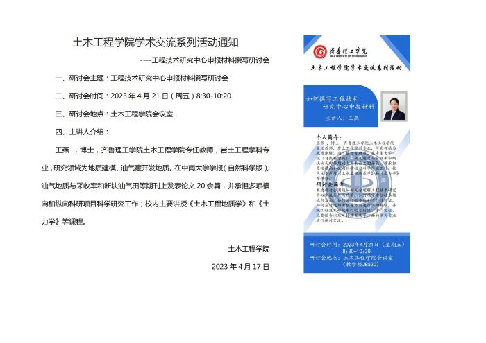 土木工程学院学术交流系列活动通知