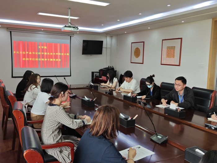 更新时间:2023-05-09 10:15 5月8日,文学院党总支在视频会议室召开“习近平总书记给中国农业大学科技学院的同学们回信”精神专题学习会。学习会由文学院党总支书记、学院副院长孔庆源主持。