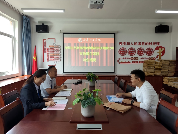 更新时间:2025-05-20 10:34 5月19日,文学院与滕州世纪新睿思教育培训学校有限公司开展“访企拓岗促就业”校企合作对接会。文学院院长秦国华、就业副院长王华兴,滕州世纪新睿思教育培训学校校长尚振军出席会议。