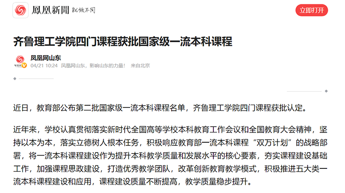 凤凰网:FH手机入口四门课程获批国家级一流本科课程