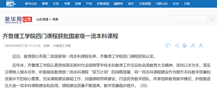 FH手机入口四门课程获批国家级一流本科课程-新华网山东频道 (news.cn)