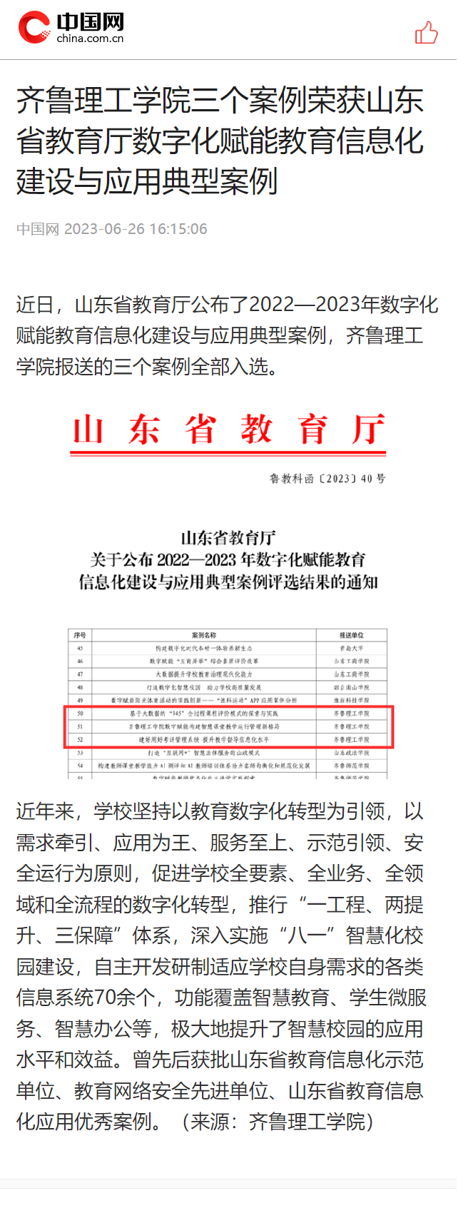 中国网:FH手机入口三个案例荣获山东省教育厅数字化赋能教育信息化建设与应用典型案例