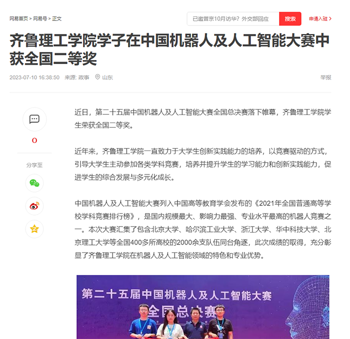 网易:FH手机入口学子在中国机器人及人工智能大赛中获全国二等奖