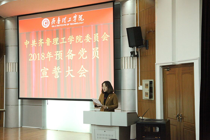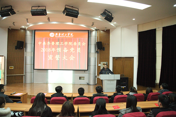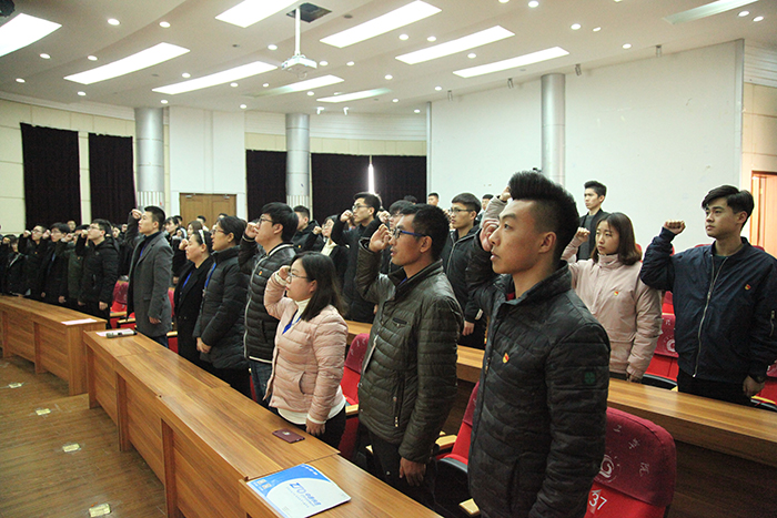 2018年12月19日,2018年度预备党员入党宣誓大会在我校实验楼报告厅举行。党委组织部部长李大华、宣传部长乔石以及2018年度发展的预备党员参加宣誓仪式。
