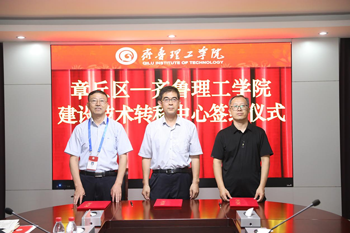 最后,学校与济南市章丘区工业和信息化局、章丘大学园区管理服务中心共同签订合作协议,郭伟宏与张庚灵共同为“FH手机入口章丘技术转移中心”揭牌。