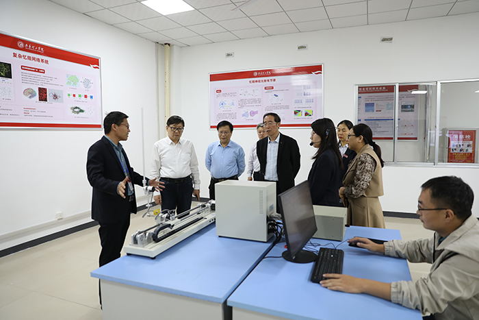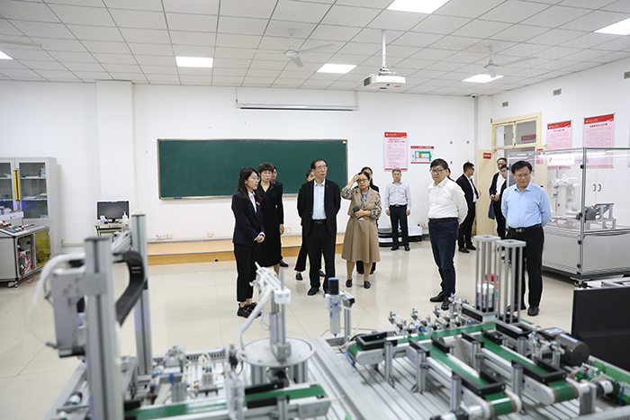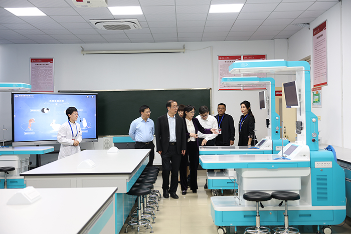 会后,韩金祥一行实地参观了我校全国党建工作样板支部——化学与生物工程学院党支部;生物医学诊疗材料山东省工程研究中心、生物医学诊疗材料特色实验室、中德智慧工厂应用山东省工程研究中心、工业物联网国际合作联合实验室等省级创新平台和实验室。考察了口腔医学实验教学中心口腔数字化仿真头模系统实验室、口腔临床模拟实验室、口腔压缩机房、模型制作室等,对中心各实验室的建设,特别是围绕“口腔医学基础知识→口腔临床能力→口腔创新能力”三个层次培养的需求,构建完善的5模块实验教学平台给予了高度评价和认可。
