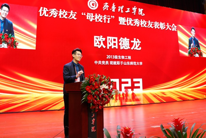 优秀校友代表生物与化学工程学院2013级生物工程专业欧阳德龙发言