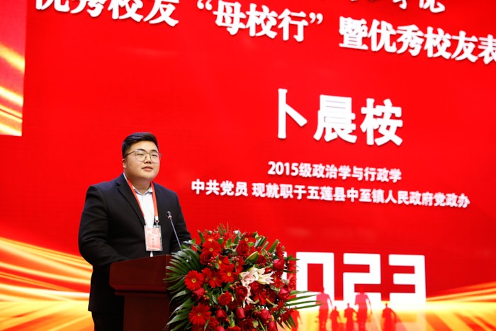 优秀校友代表商学院2015级政治学与行政学专业卜晨桉发言