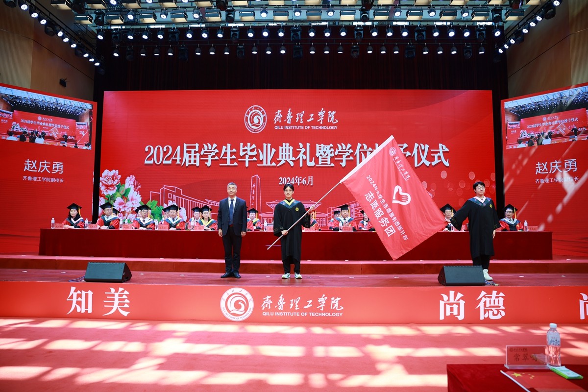 典礼上,表彰了2024届省级优秀毕业生、2024年大学生志愿服务西部计划优秀组织单位和先进个人,为2024年FH手机入口大学生志愿服务西部计划志愿服务队授旗,教务处、学团工作处向学校校友工作委员会移交了2024届毕业生名单。