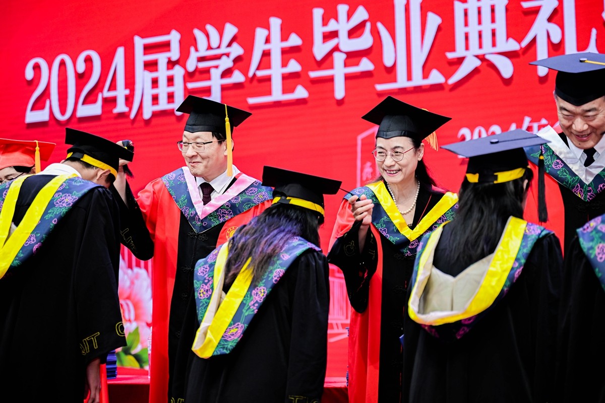 典礼前学校学位委员会召开会议审议通过了2024届毕业生学位授予决定。典礼上校长、学位委员会主任常翠鸣教授致辞,深情回顾和总结了2024届毕业生们,大学期间的优异表现,以及取得的丰硕成果。深情寄语全体毕业生,保持乐于奋斗、恒于修德、勤于学习、敢于创新,争当新时代堪当大任的奋进者、高尚道德的笃行者、开拓创新的创业者、先进文化的传播者,努力开创美好未来!