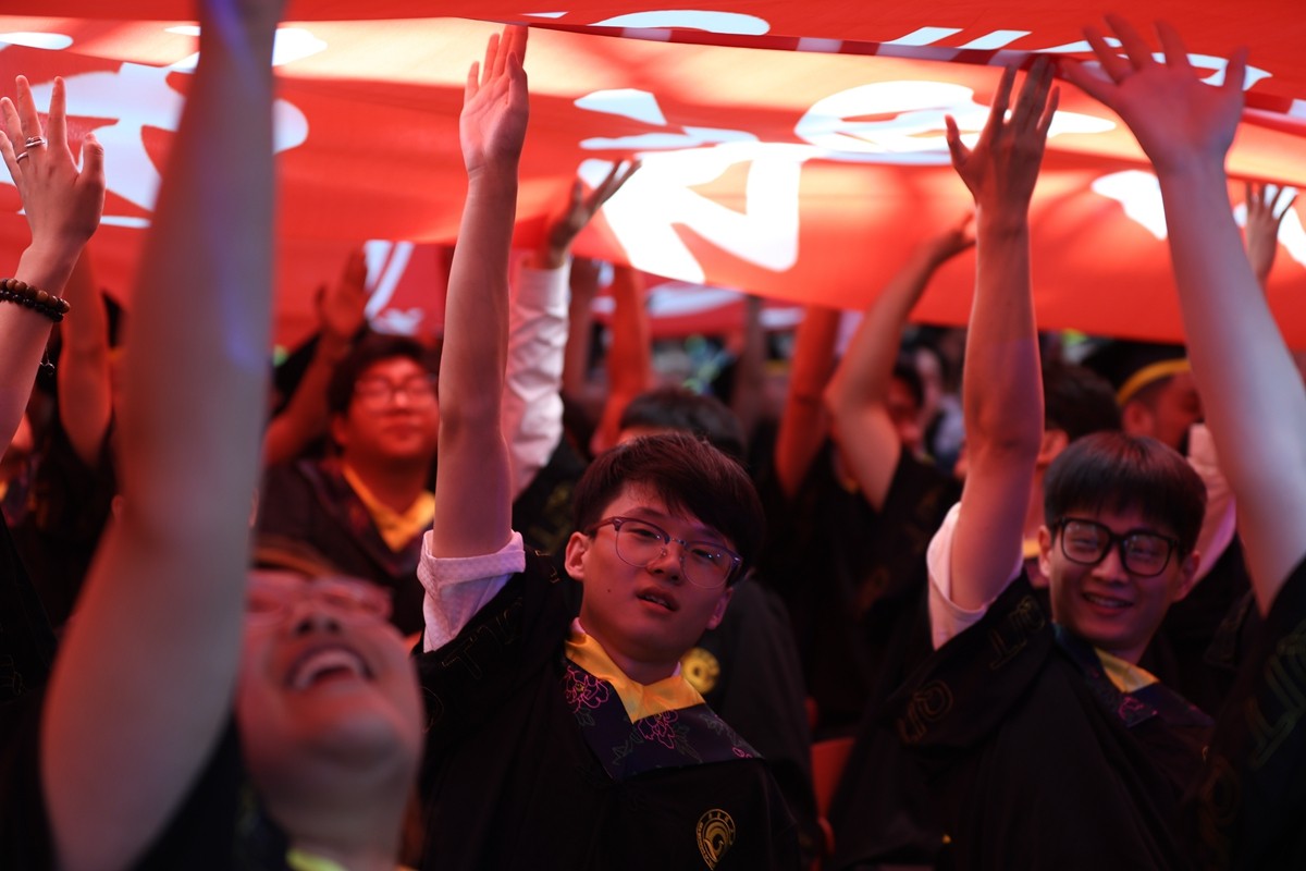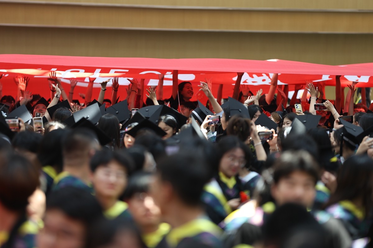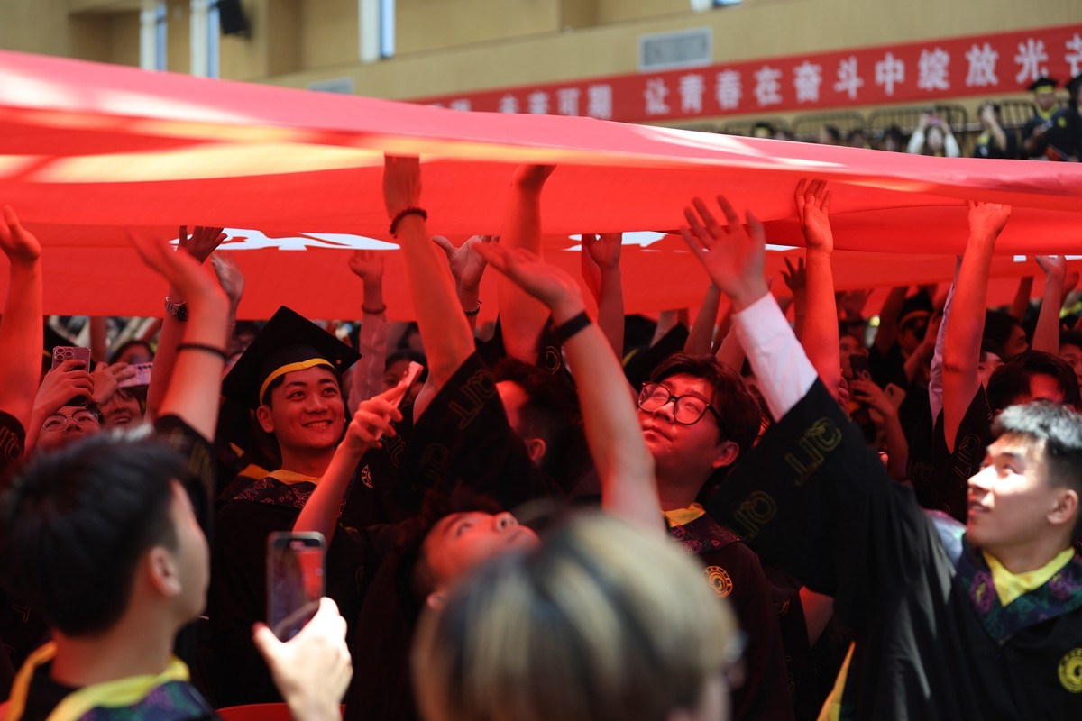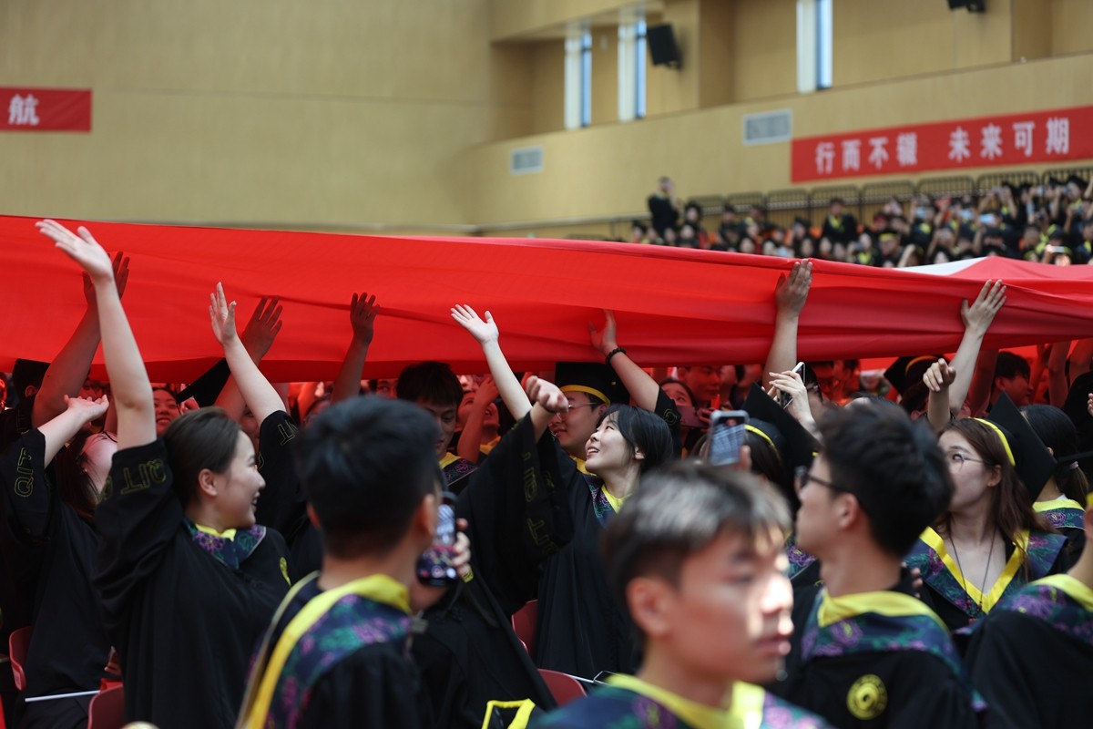 毕业生触摸校旗