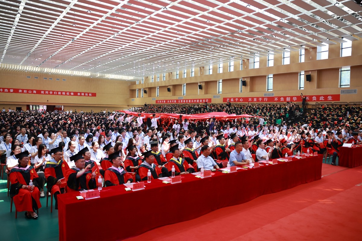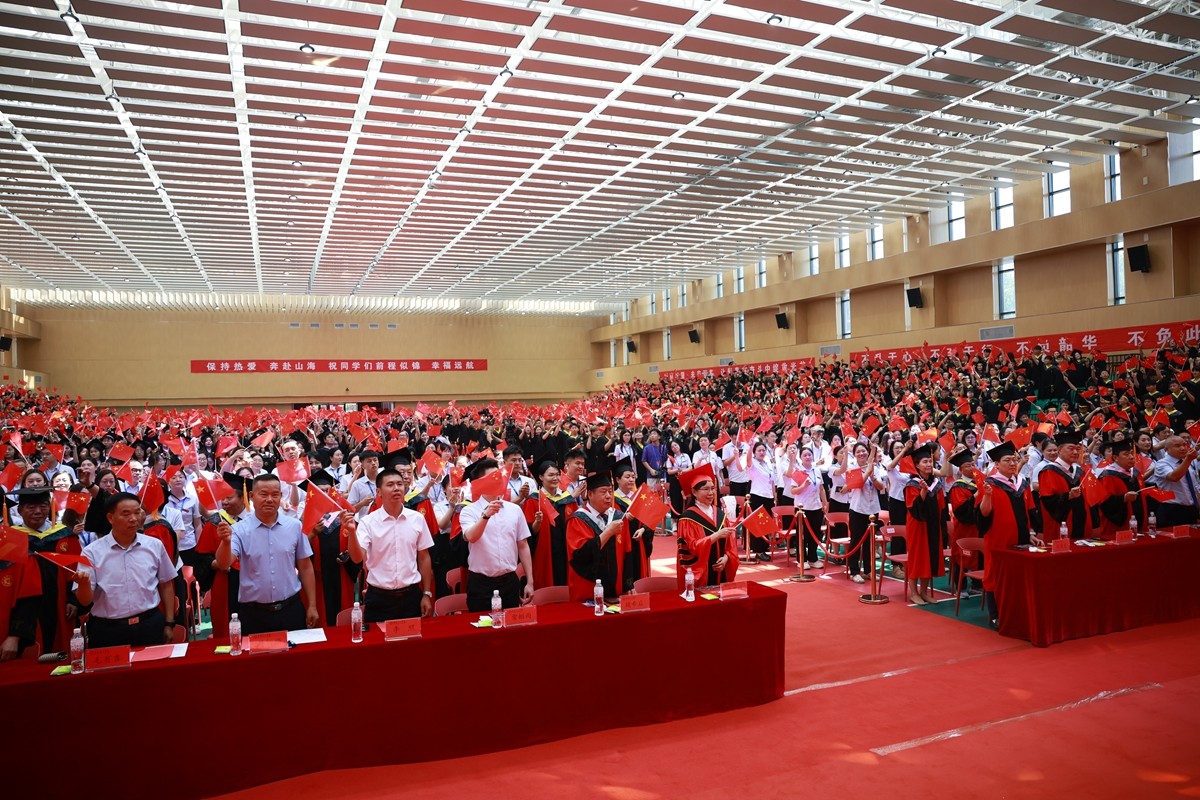学位授予仪式结束后,学校领导与毕业生共同观看了“再见母校 你好未来”文艺演出。最后毕业典礼和学位授予仪式,在师生高唱《我和我的祖国》的歌声中徐徐落下帷幕。